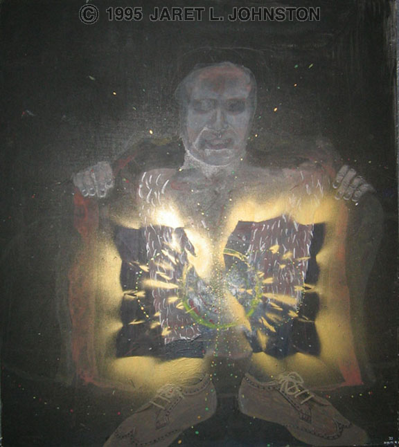 Acrylic and gold spray paint on primed gator board